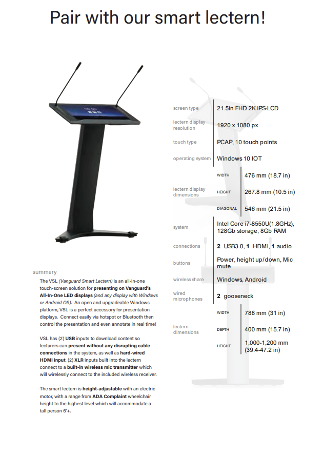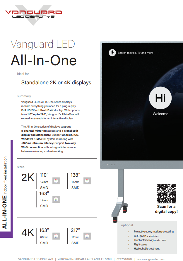 All-In-One displays include everything you need for a plugn-play full HD display. With options from 108” up to 217”, All-in-One will exceed any needs for an interactive display.
