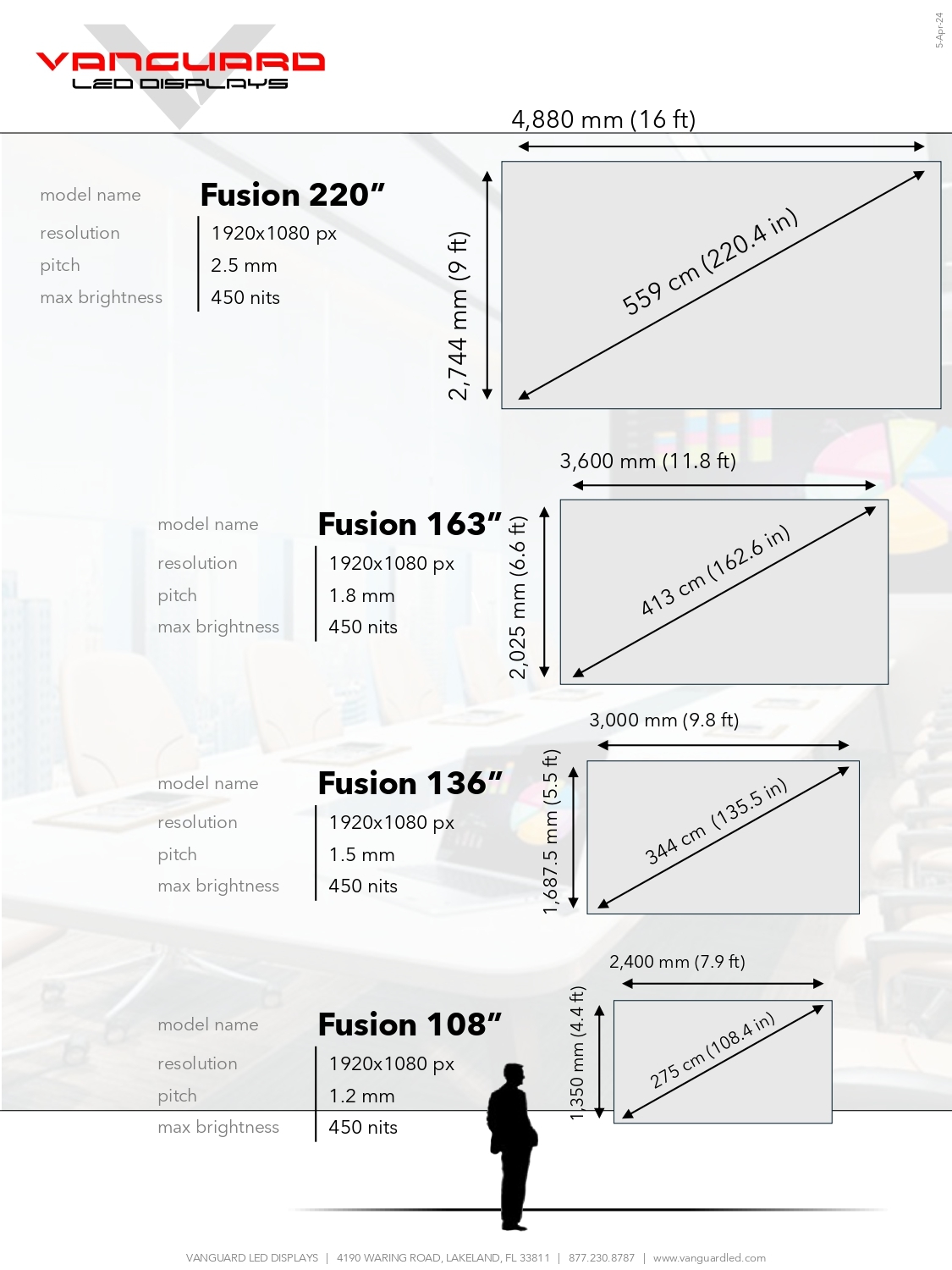 The vanguard led displays fusion series scalable HD + 4k led display is the perfect solution for those who want the best of both worlds – the scalability of an HD led display with the added bonus of 4k compatibility.